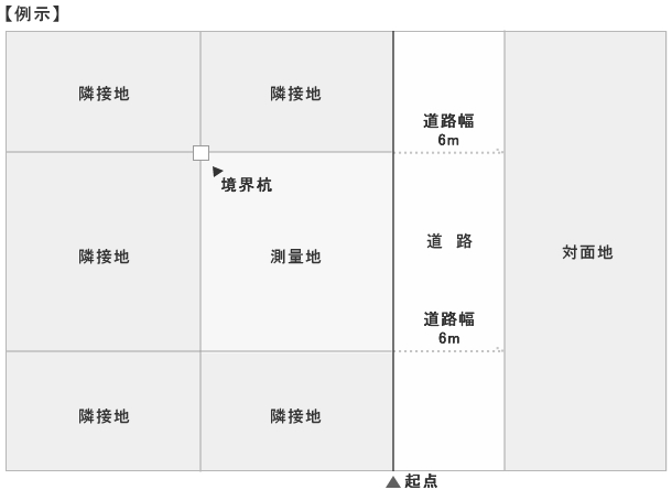 - 測量地と道路・水路との境界が道路・水路の規定幅員の起点となり、対面地と道路・水路の境界に影響するから。